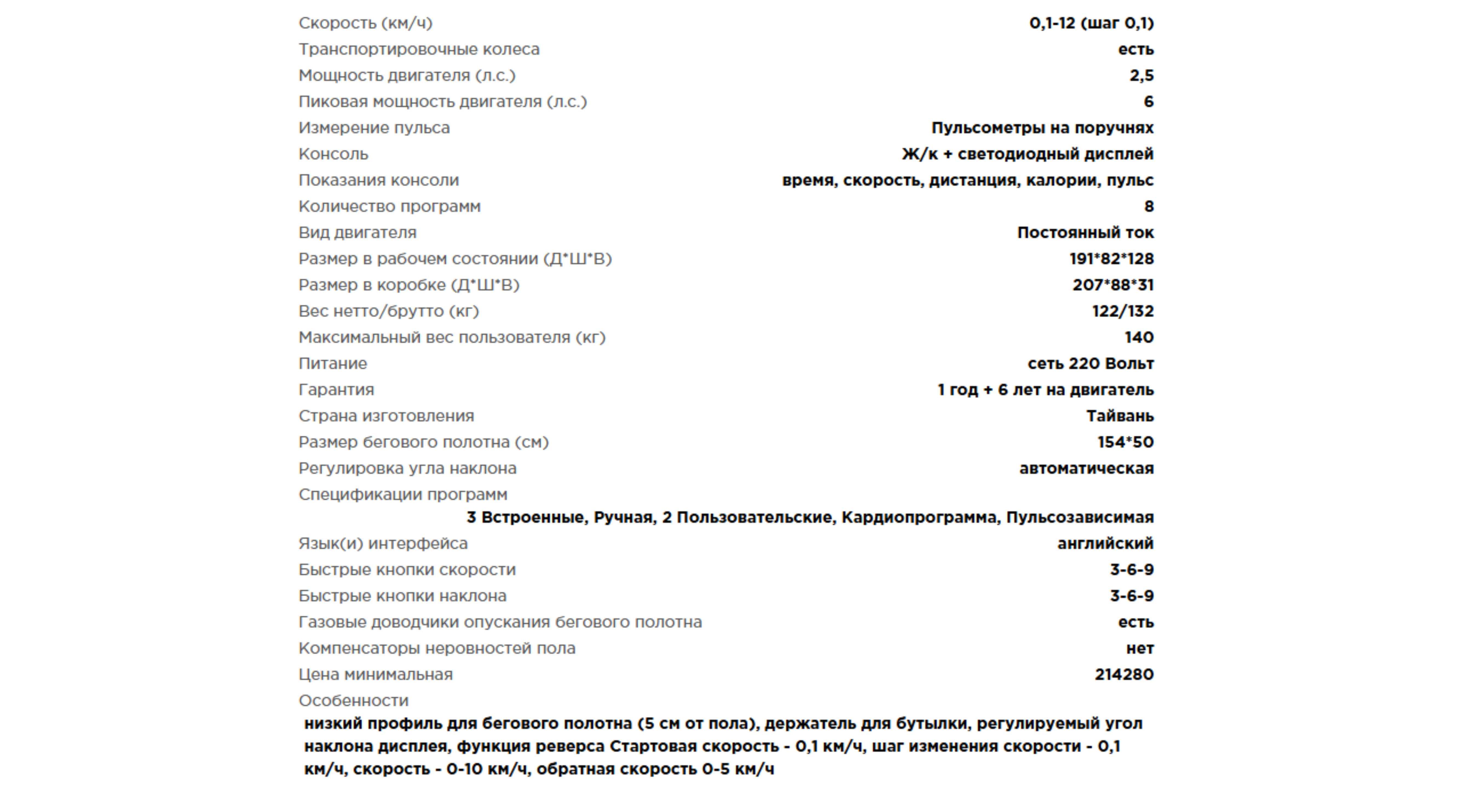 Дорожка оснащена мотором со средней мощностью 2,5 лошадиных силы и гарантией производителя 6 лет!