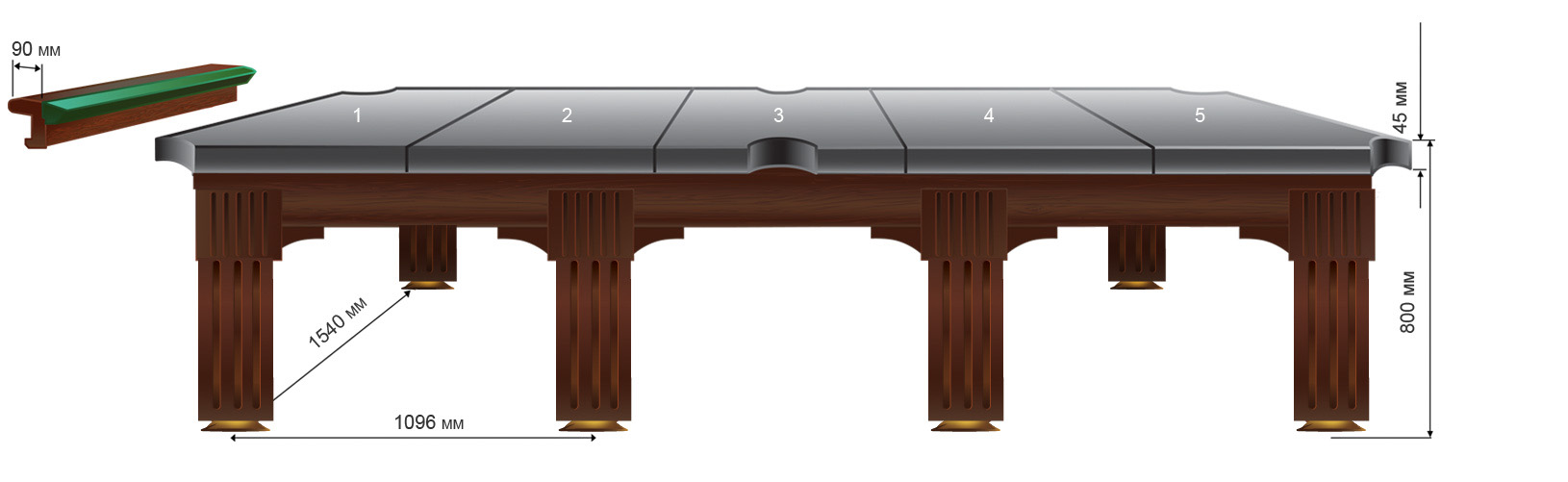 Бильярдный стол - Омега III 12 Футов, Русская пирамида, PBS 45 мм, фото 3