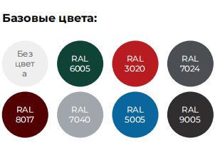 - Базовые цвета по каталогу RAL отличные от 6005 производятся без наценки от 100 шт