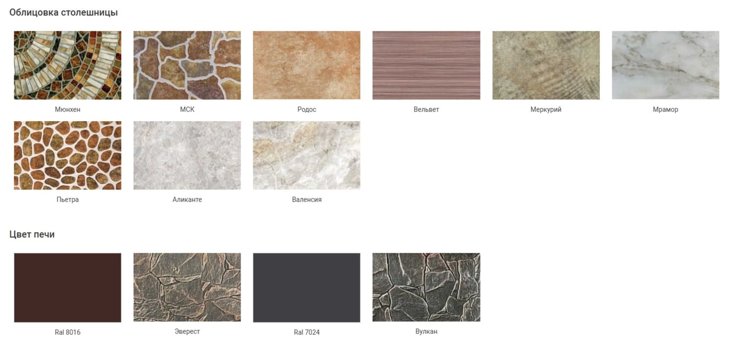 - Керамическая плитка. Это лучший материал для отделки столешницы, а также отделений для хранения дров, угля. Плюс плитки в том, что она не впитывает грязь, легко отмывается и приводится в порядок. В результате печь остается гигиеничной, аккуратной и практичной.